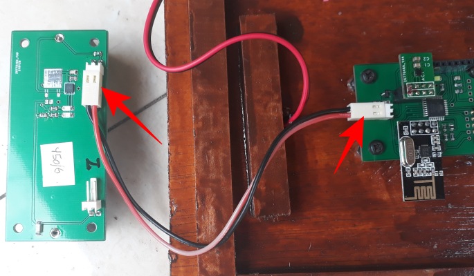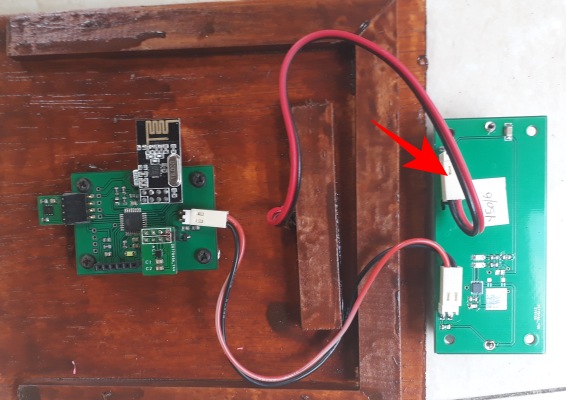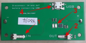 Connect the solar panel cable to the input connector (1) on the charger module. When you hold the solar panel up to a strong light, you should see the red LED (3) on the charger module come on.