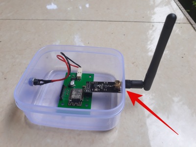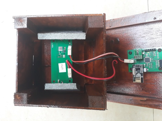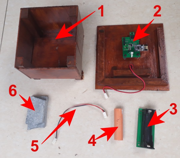 Carefully place the charger module inside the base, and then put small stones all round it, then put the lid on, with the solar panel at the top of the slope.